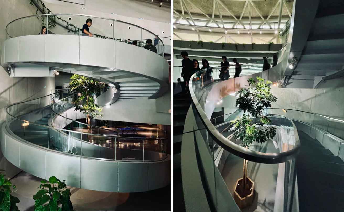 国家基因库主建筑内部无不向生物学靠拢,比如,那段连通大厅和二楼库房的楼梯,螺旋状上升的造型就是DNA形状;员工休闲区隔间的设计灵感来源于洋葱切片的网状细胞壁。人在其中,就仿佛喝下了爱丽丝掉进兔子洞后那瓶微缩药水,游走在巨大的细胞内部。
