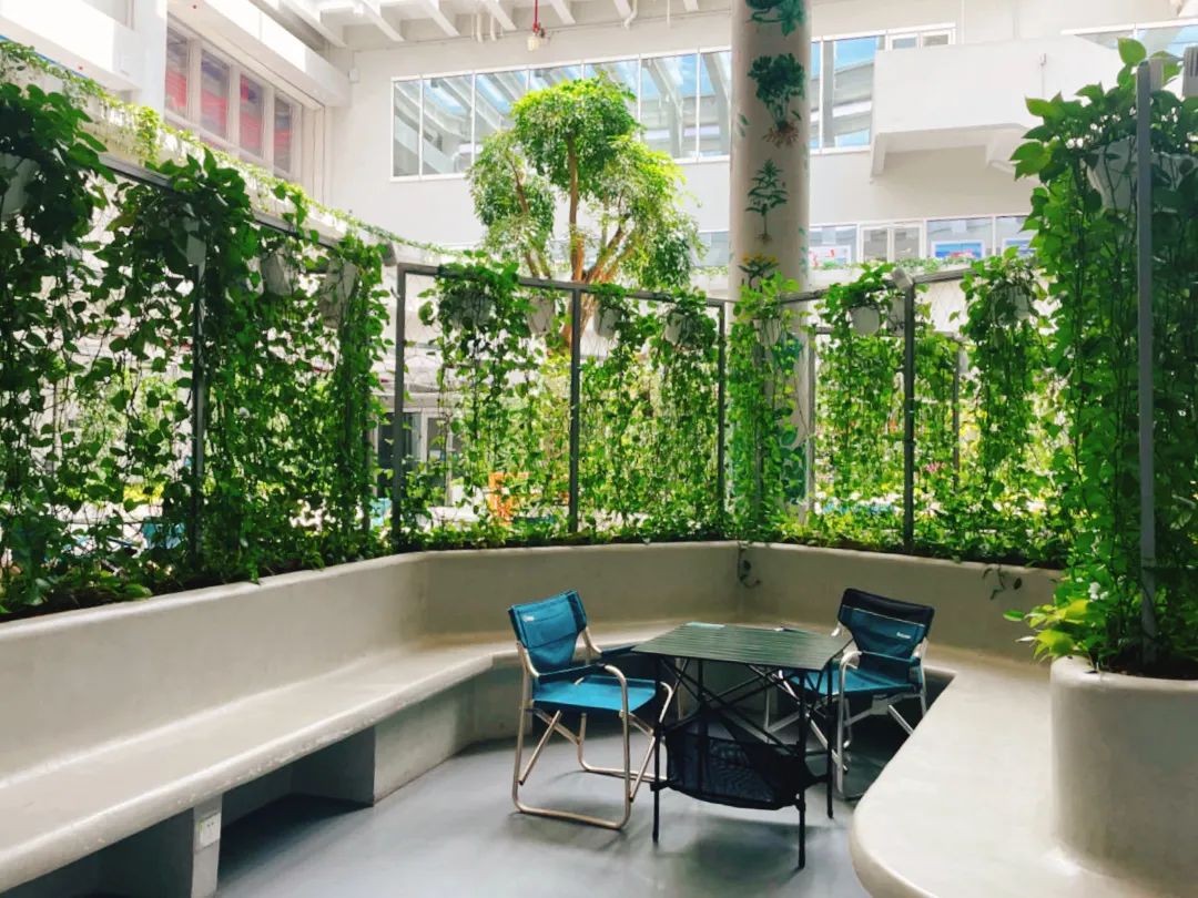 整个园区同时还参考了桃花源、山石、三生(生态、生产、生活)融合的概念,主建筑外火烈鸟悠闲自在,山上果树抽着新芽,羊驼梅花鹿慵懒休憩,水中锦鲤成群结队,黑白天鹅优雅戏水……俨然一个相对独立的小生态系统。
