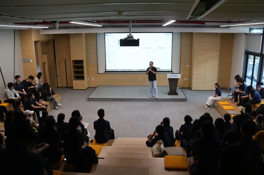 在时空中心的活动室里,华大的孙老师从基因测序、遗传学如何助力养殖业再到物种种群研究案例,娓娓道来,为华附国际部师生上了一堂精彩纷呈的基因科技与生物多样性保护课。同学们热烈地与孙老师进行互动,探讨关于生物基因甚至动物实验伦理的问题,甚至还针对目前的物种种群保护提出“新方案”。