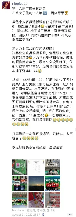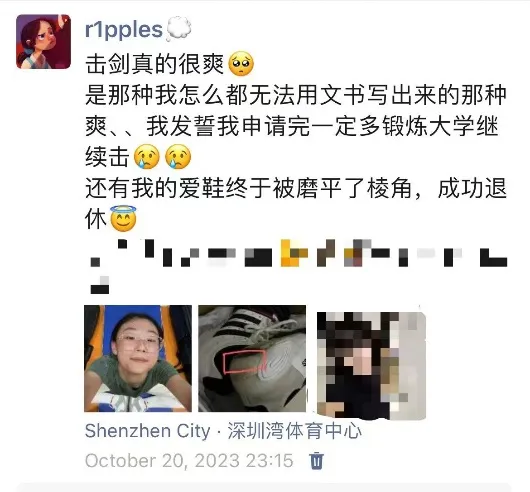感谢老叫我梦丸的海峰、周教练、廖帅、牛教练……还有张导,谢谢你们的指导,击剑已经成为我的一部分,未来我会继续坚持我的热爱!还有一起训练的剑友们,暑假dd!