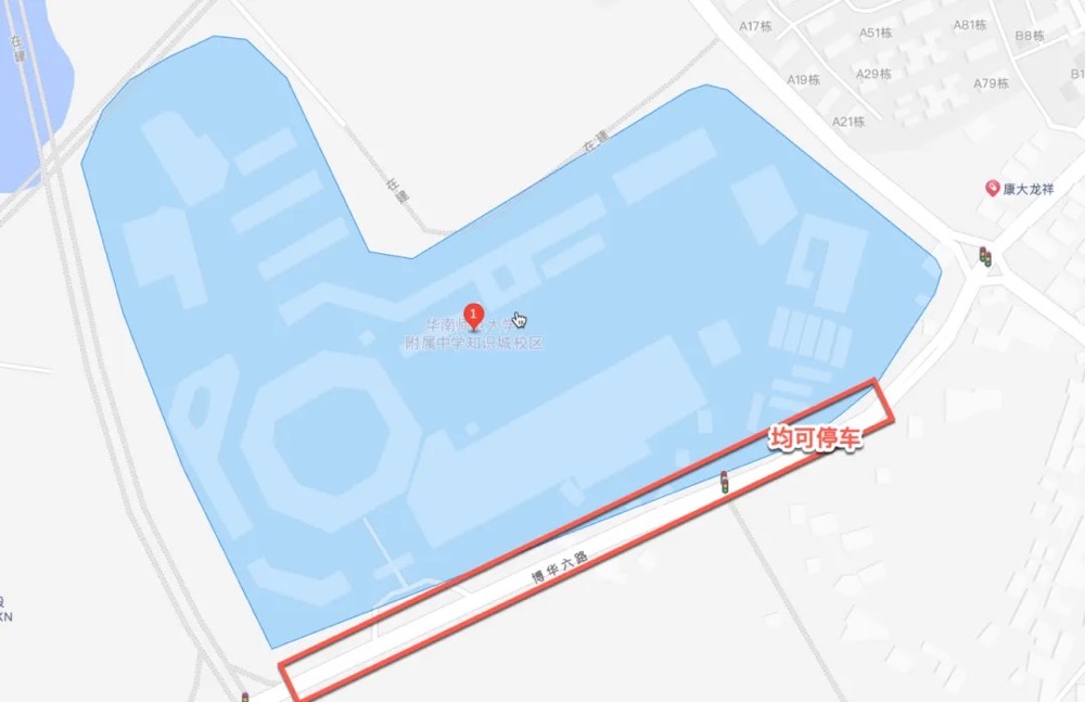 车辆可停放在学校正门(东南门)前马路边(博华六路),步行从正门进入校园。