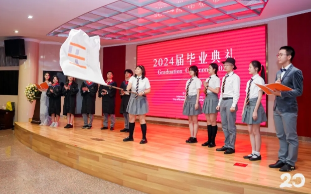 每年的毕业典礼上,当毕业生们即将结束高中生活时,他们就会将象征拼搏奋斗向上的旗帜传给下一届的同学,让每一届HFI毕业学子的意志代代相传,激励着未来的每一位学弟学妹!