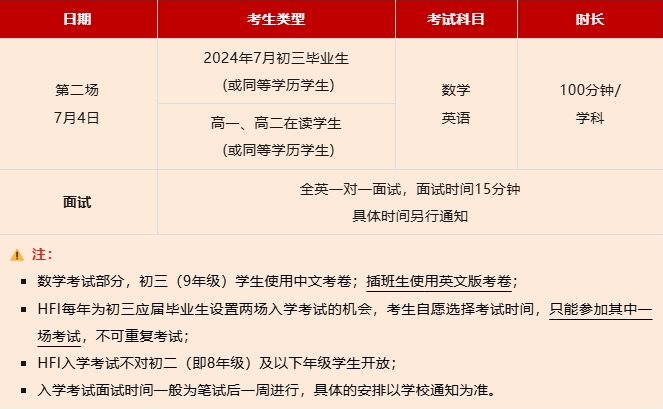 HFI华附国际部今年最后一场考试将于7月4日(周四)下午14:30举行,考试地点位于华师附中石牌校区。