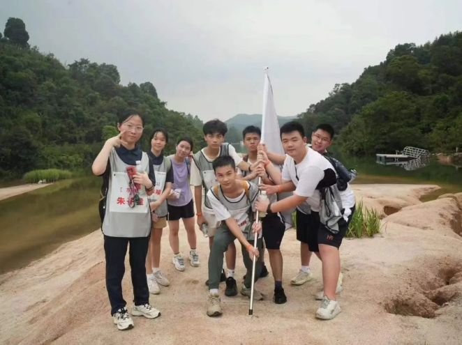 刺眼的阳光透过树荫照射下来,我们知道又该出发了。有人渐渐撑不住,由老师帮助到补给点,但我们使命必达,简爱队必须大步向前!扛起队旗,是责任是挑战更是勇气和担当!