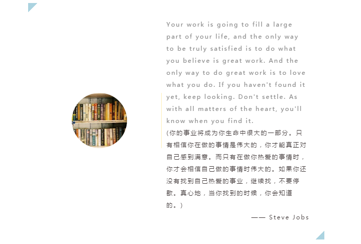 回看在HFI的生活,我还是庆幸,能够找到自己热爱的事情,并因此有了自己的目标。最后再引用一句非常喜欢的老乔的话,来激励自己在今后追求梦想的过程中不要被困难和他人的反对阻挠,永远相信自己: