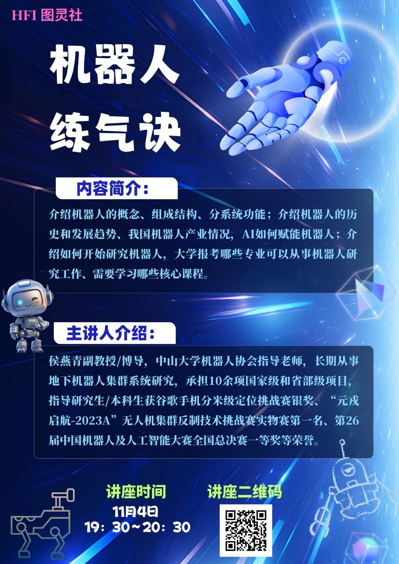 HFI 图灵社致力于为同学们打开科技的大门,引领大家探索前沿科技的奥秘。此次,我们特别邀请到了中山大学机器人协会指导老师侯燕青副教授,为大家带来一场关于机器人的深度知识盛宴,相信一定会让同学们受益匪浅。