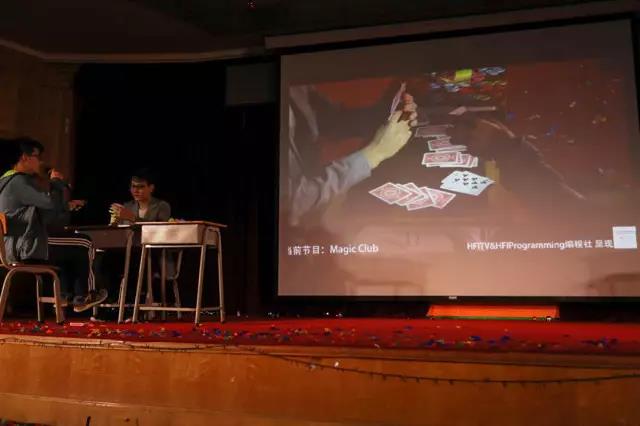 李泽新(左二)在2016年圣诞晚会上魔术表演