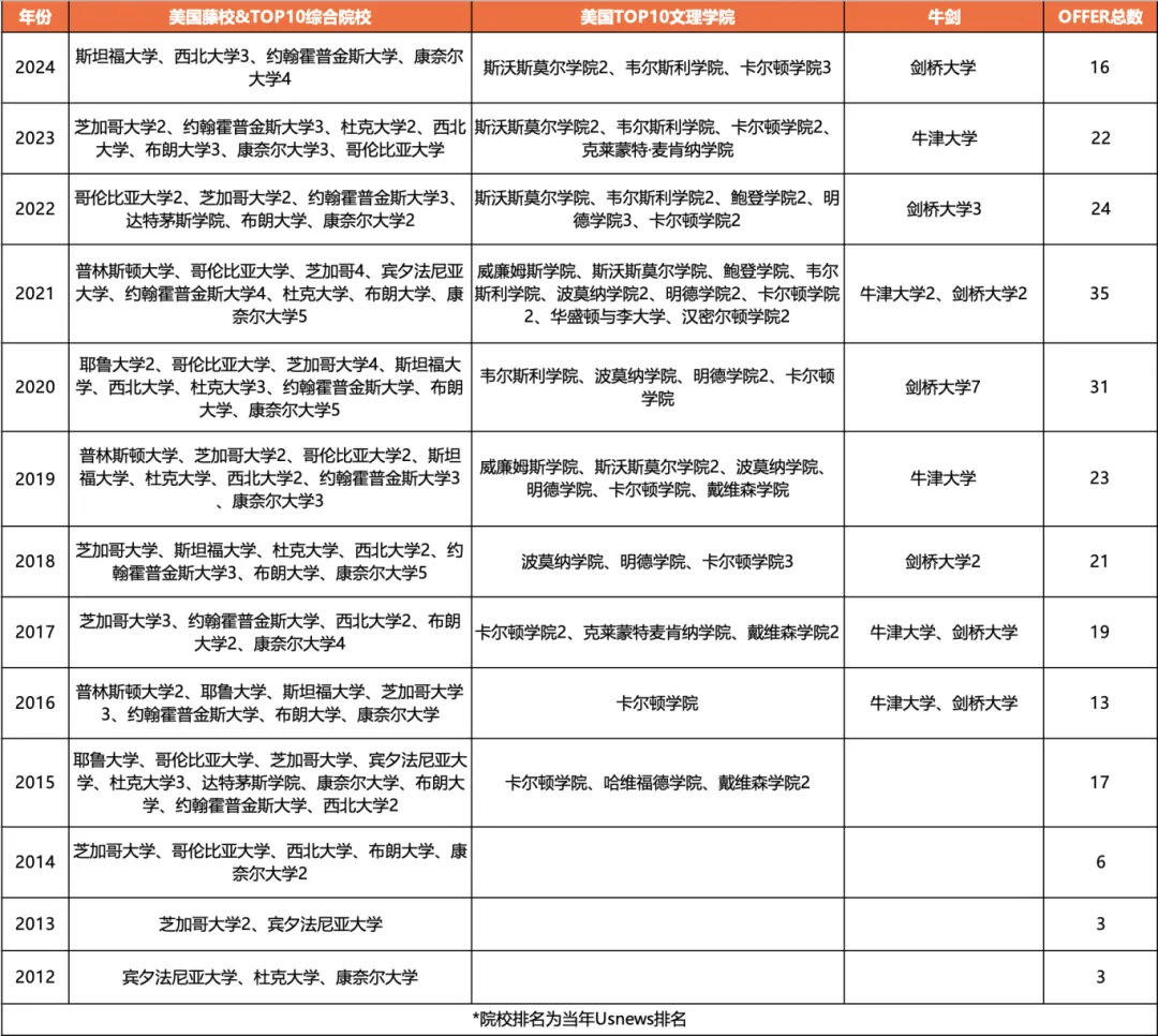 ▲ 历届AP学生英美顶尖院校录取情况,点击查看完整录取情况