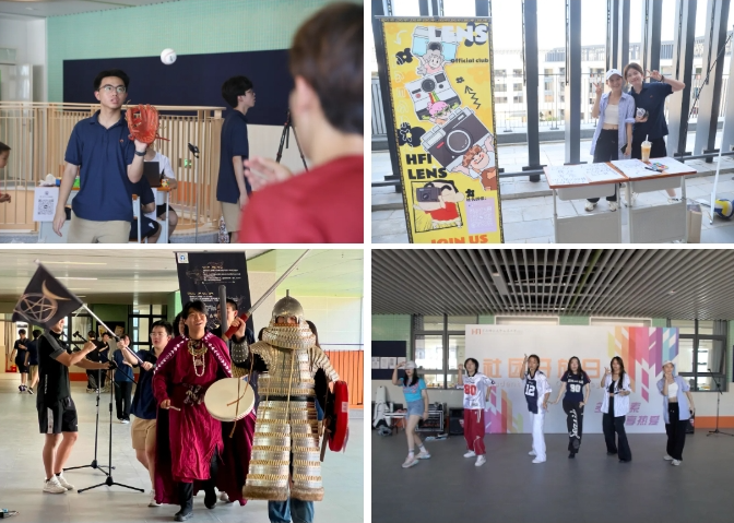 使展示HFI学生社团,体验学长学姐社团活动,现场还有社团纪念品出售;