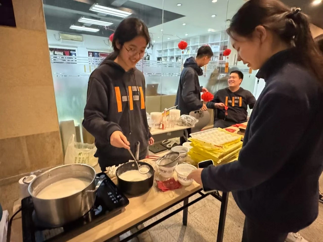 今年,Harky老师带着学生助理在大堂摆起了“汤圆摊”,为大家带来了香甜可口的汤圆,形式各异,充满着团圆的味道,糯糯的口感,一口下去让人充满了幸福感!