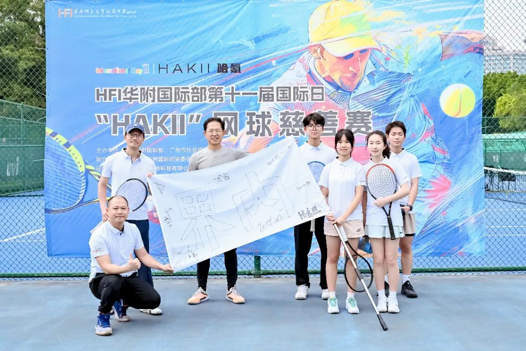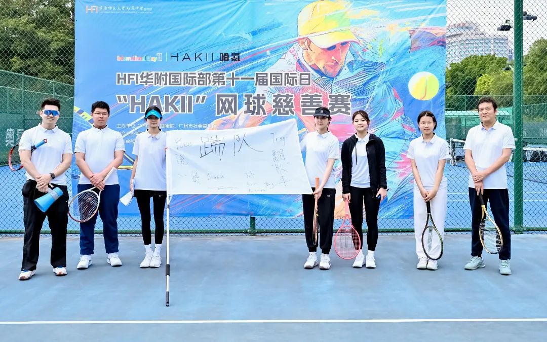 作为华附国际部(HFI)第十一届国际日系列慈善活动之一,HFI第十一届国际日“HAKII”杯网球慈善赛于2月22日在广州二沙岛宏城网球场温情上演。HFI参赛师生、家长代表,以及本届赛事赞助商广州海薇特科技有限公司负责人徐智雄先生、李晚平女士共同为赛事开球。