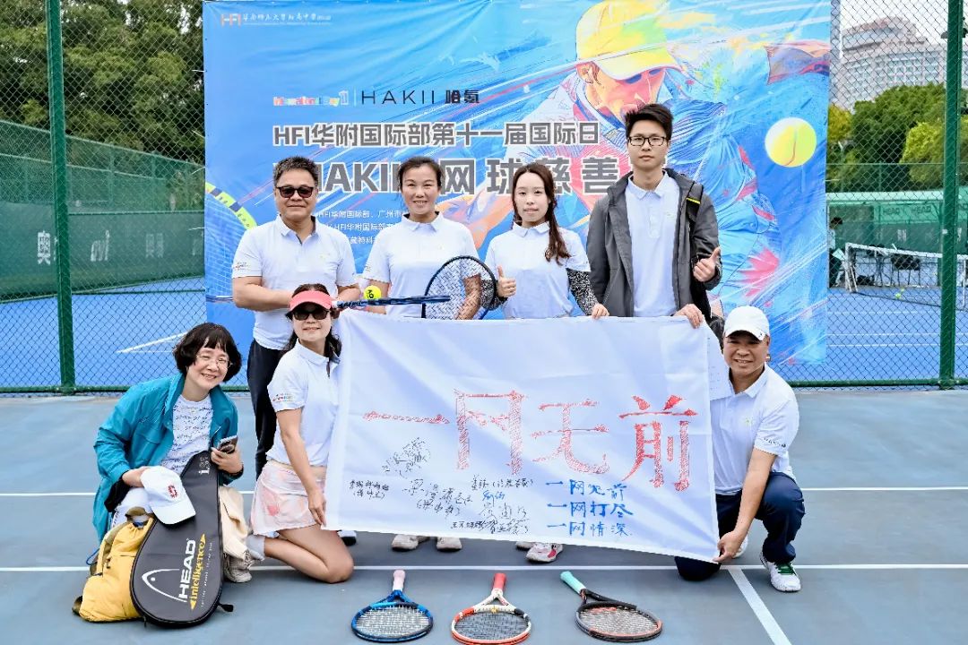 自2014年首届国际日以来,HFI始终秉持“家校·融合·交流”的理念,累计已为广州市社会福利院筹集善款超554万元,惠及孤残儿童养育、教育设施改善等项目。本届赛事由广州海葳特科技有限公司冠名赞助,延续“为爱挥拍”主题,不仅吸引了超过60位在读学生及家长积极参赛,更有毕业校友专程返场,例如,12届的IFY杨思远学长和AP肖璐学姐,14届AP李卓亚学长,展现了HFI大家庭从创办至今的凝聚力。此外,还有来自其他学校的网球高手及亲友团踊跃加入,赛场内外洋溢着竞技和友爱的氛围。