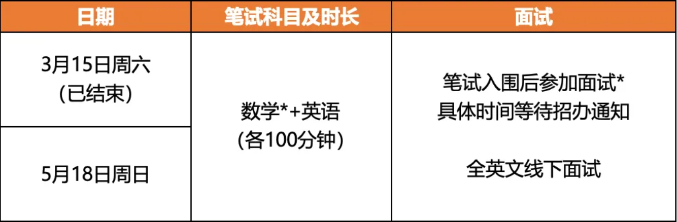 第二场入学考试将在5月18日(周日)上午举行,请意向报名第二场考试的学生尽快完成报名资料的提交。