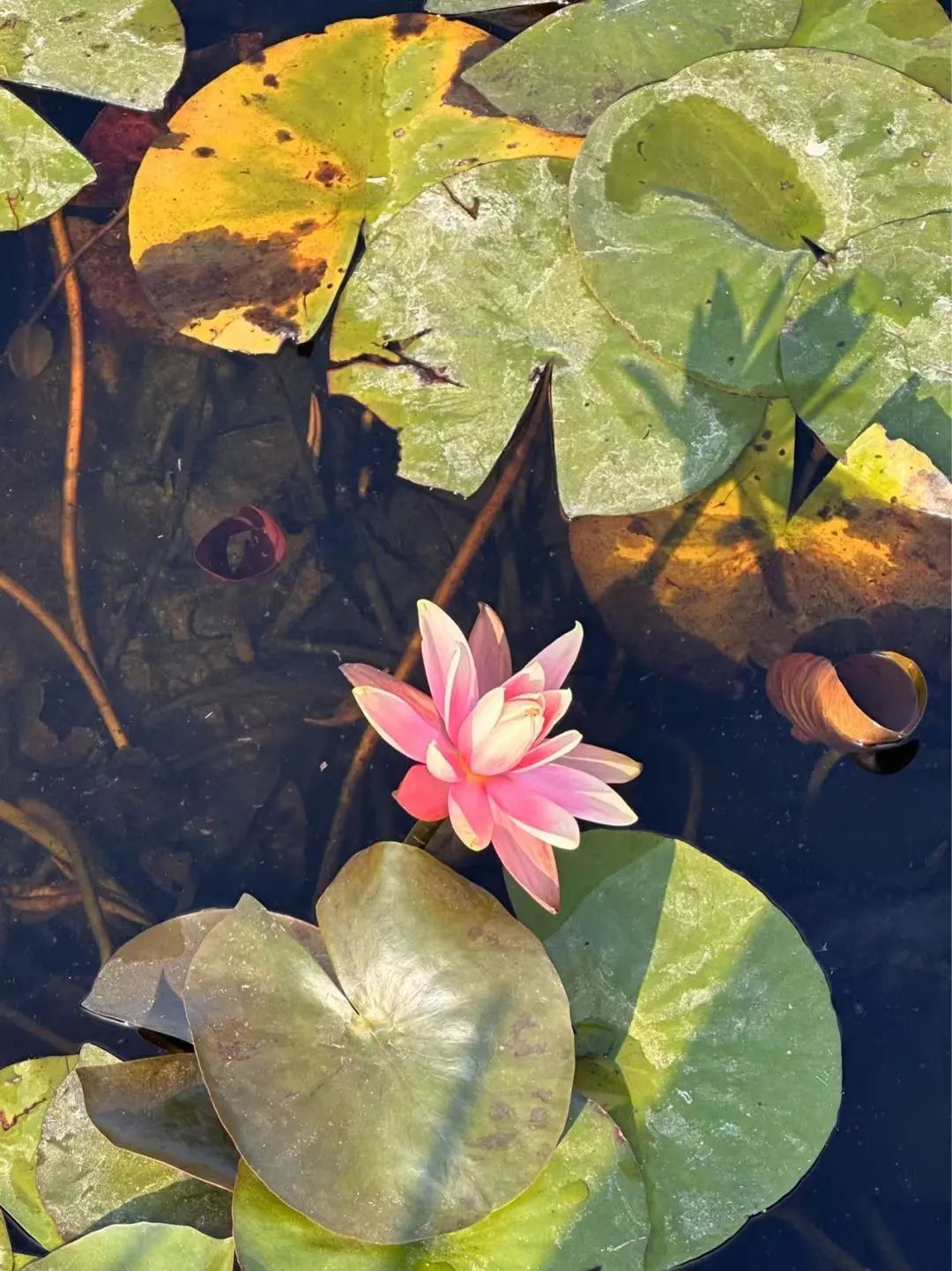 晴天的阳光透过树梢洒在地上,静谧又暖洋洋的。