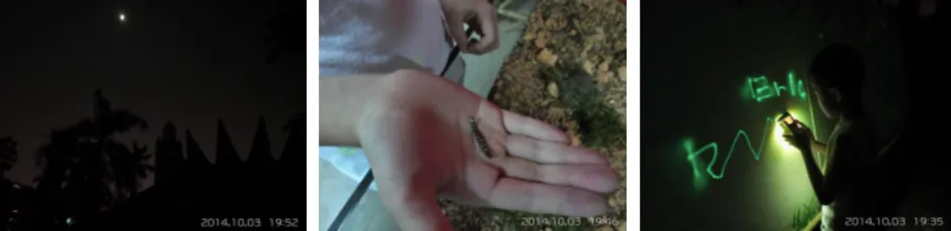 第一次看见萤火虫就被它独特的发光形态深深吸引,并以萤火之光写下自己的名字。
