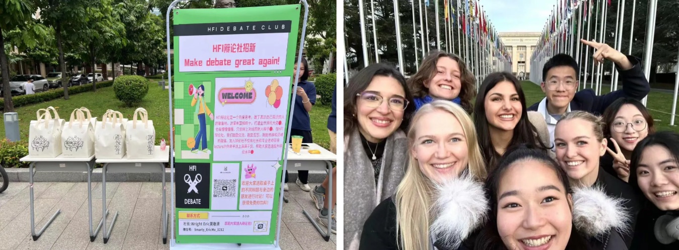 在课堂外,从入学的新生足球赛,到运动会,社团开放日,家校联谊,万圣节party等等,参与的各种活动不仅让我提升了能力,增进了友谊,也更让我意识到原来在HFI,学术能力和排名不再是判断一个学生是否优秀的唯一标准。我成为了辩论社的副社长,跟着当时的社长一起举办各种社团活动,讲座以及校内辩论赛。凭借着辩论社的平台,我意识到除了思辨能力,参与辩论还能帮助我在领导力和组织能力得到提升。