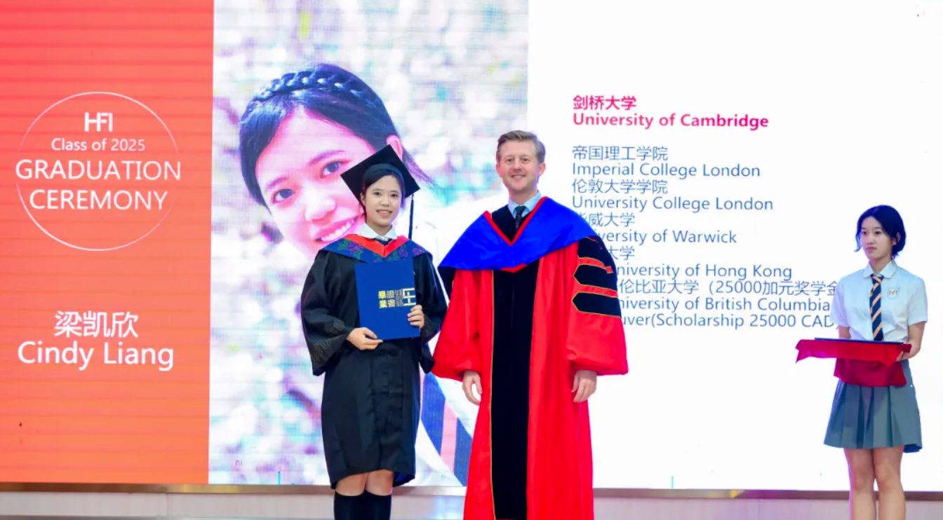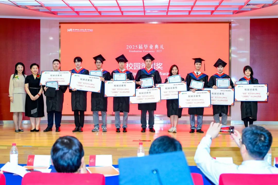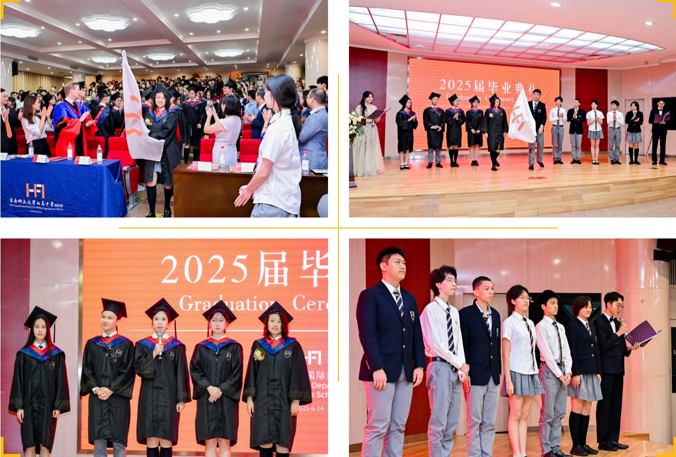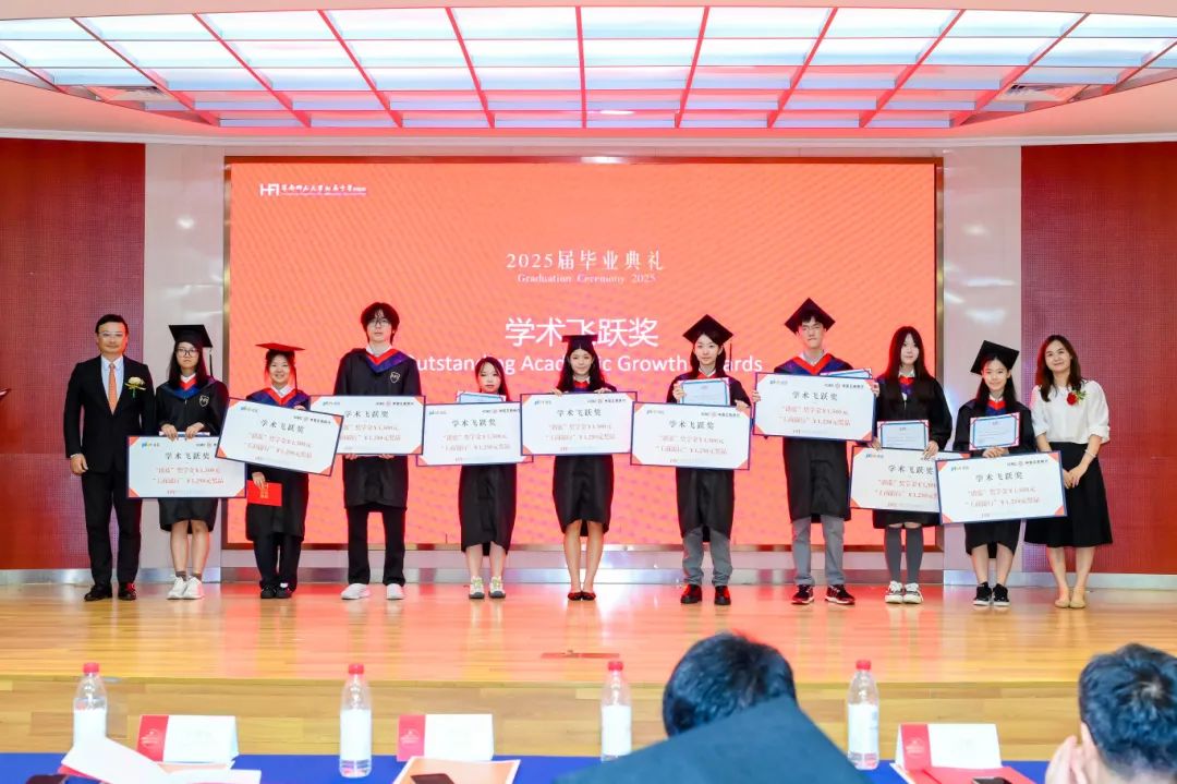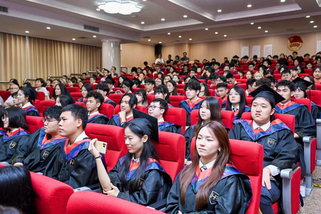 在传旗仪式中到来。五位2026届学生代表踏着鼓点走上舞台,从学长学姐手中接过写着“HFI”的旗帜。旗帜交接,意味着2025届毕业生在HFI的时光即将结束,2026届准毕业生将迎来人生中一次重要的“向顶峰冲刺”时刻。