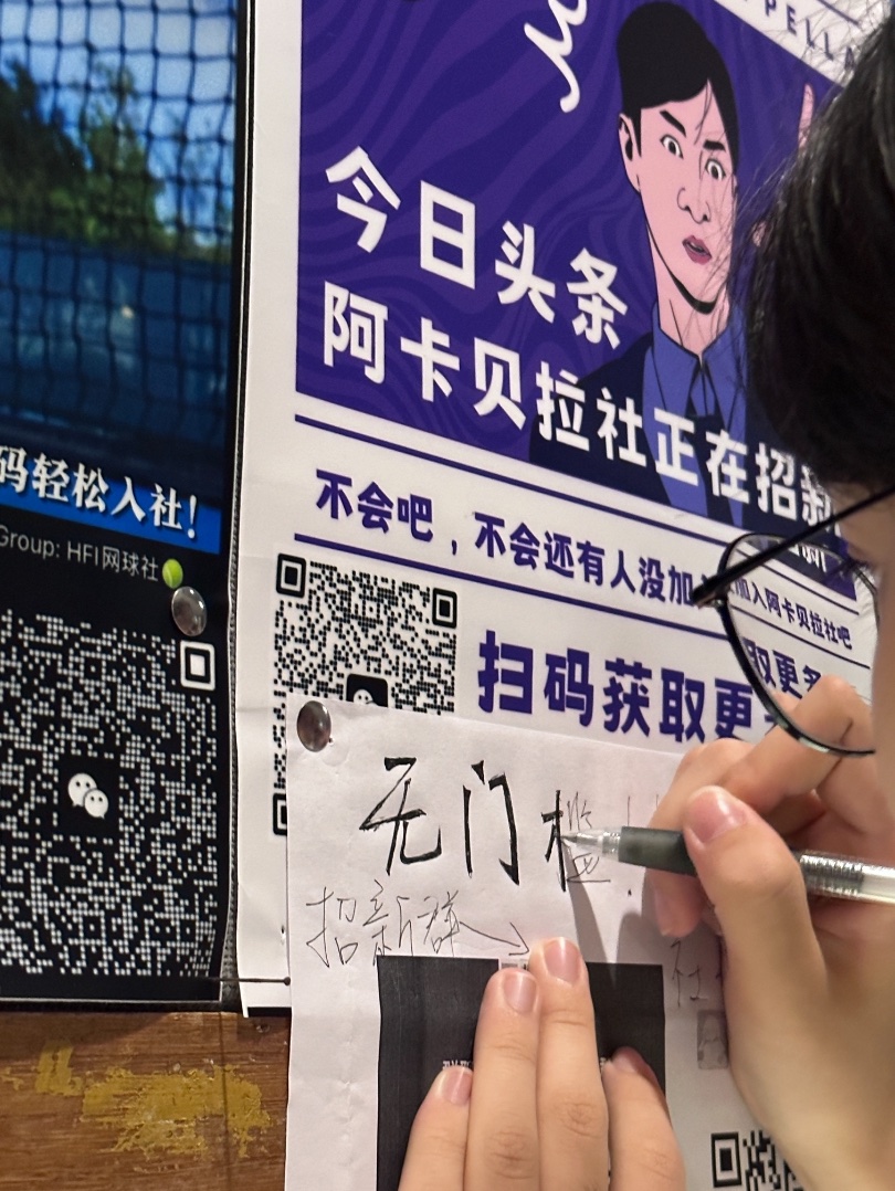 人少带来的最大焦虑,是怕阿卡在我们毕业后消失。这让我在招新之前狠狠失眠了几个晚上。现实似乎确实印证了我的担心,原定的快闪并没有什么人来看。于是我们决定改变一下策略,尽管很犹豫很紧张,我们敲开了y9y10每一个教室的门,站在白板前大声地唱。招新群也从不到十个人增加到了五十多,虽然高二这年最后活跃的新人并不多,但我特别骄傲,因为越来越多的人认识我们了。