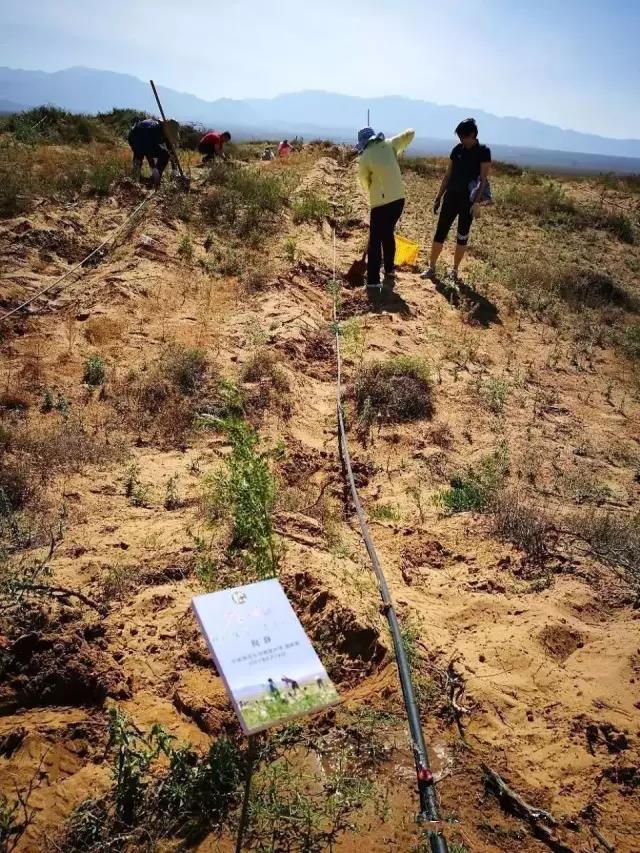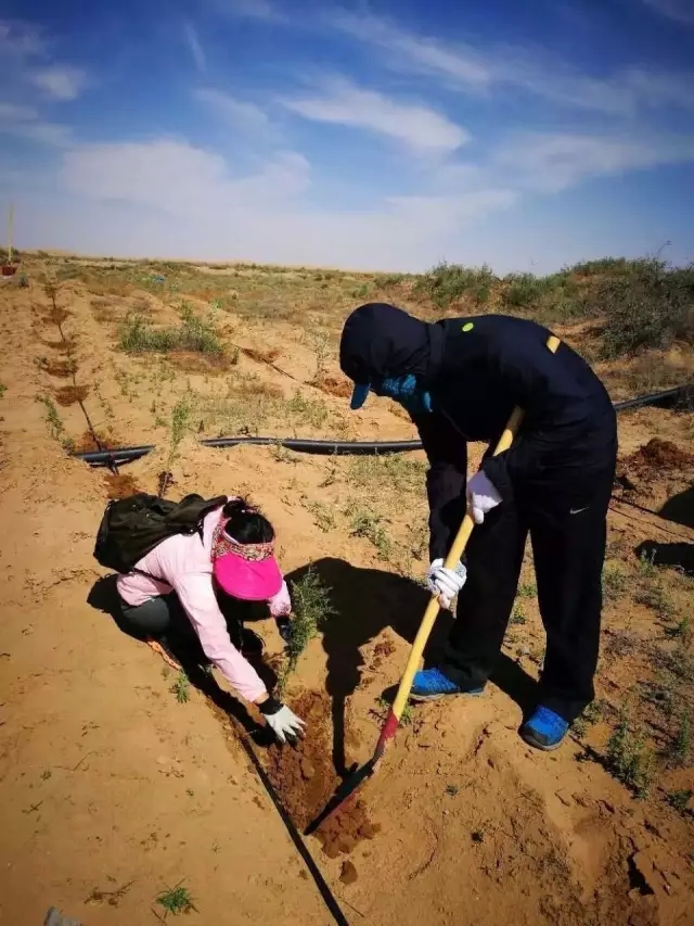 在三个小时的时间内,我们的团队一共种下了180棵柠条树苗,固沙九百平方米,在体验植树劳动的同时,体会了人与生态环境之间和谐发展的意义,大家都受益匪浅,相约明年暑假再次来到基地植树,让我们友谊林的面积越来越大,树木更加茂盛。虽然在腾格里沙漠的边缘只是微小的一段,为防风固沙、保护环境也做出我们的贡献。
