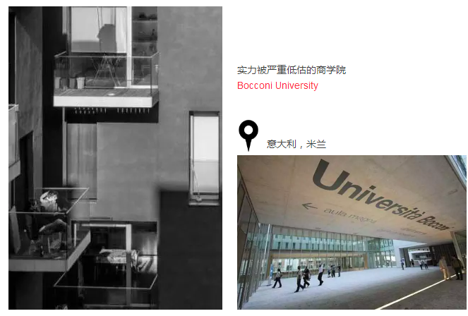 博科尼大学坐落于意大利米兰,是意大利最好的商学院,也是整个欧洲TOP的商学院。博科尼的经济,法律和管理学专业在欧洲享有很高的声望,在各类商学院排名中都稳居世界前十。学校里不乏贵族政要CEO子女,不少欧洲富二代、官二代喜欢送子女来Bocconi,相关领域的最好资源几乎都汇集在这里:名师、高素质的学生、校友资源、工作机会等等。