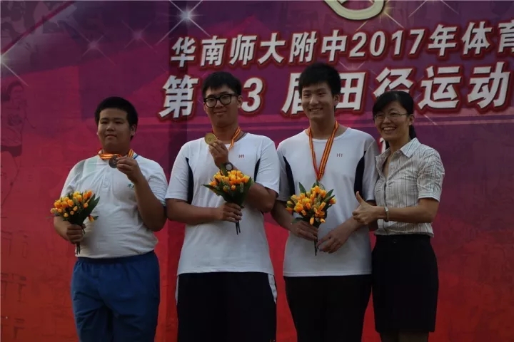 孙瑞君、戴博程(左二、左三)分别获乙组男子铅球冠军、亚军