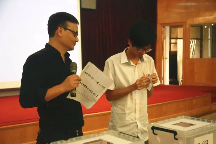 当各班代表逐一上台抽取国家时,全场笑声掌声欢呼声不断。现场感受台下的气氛: