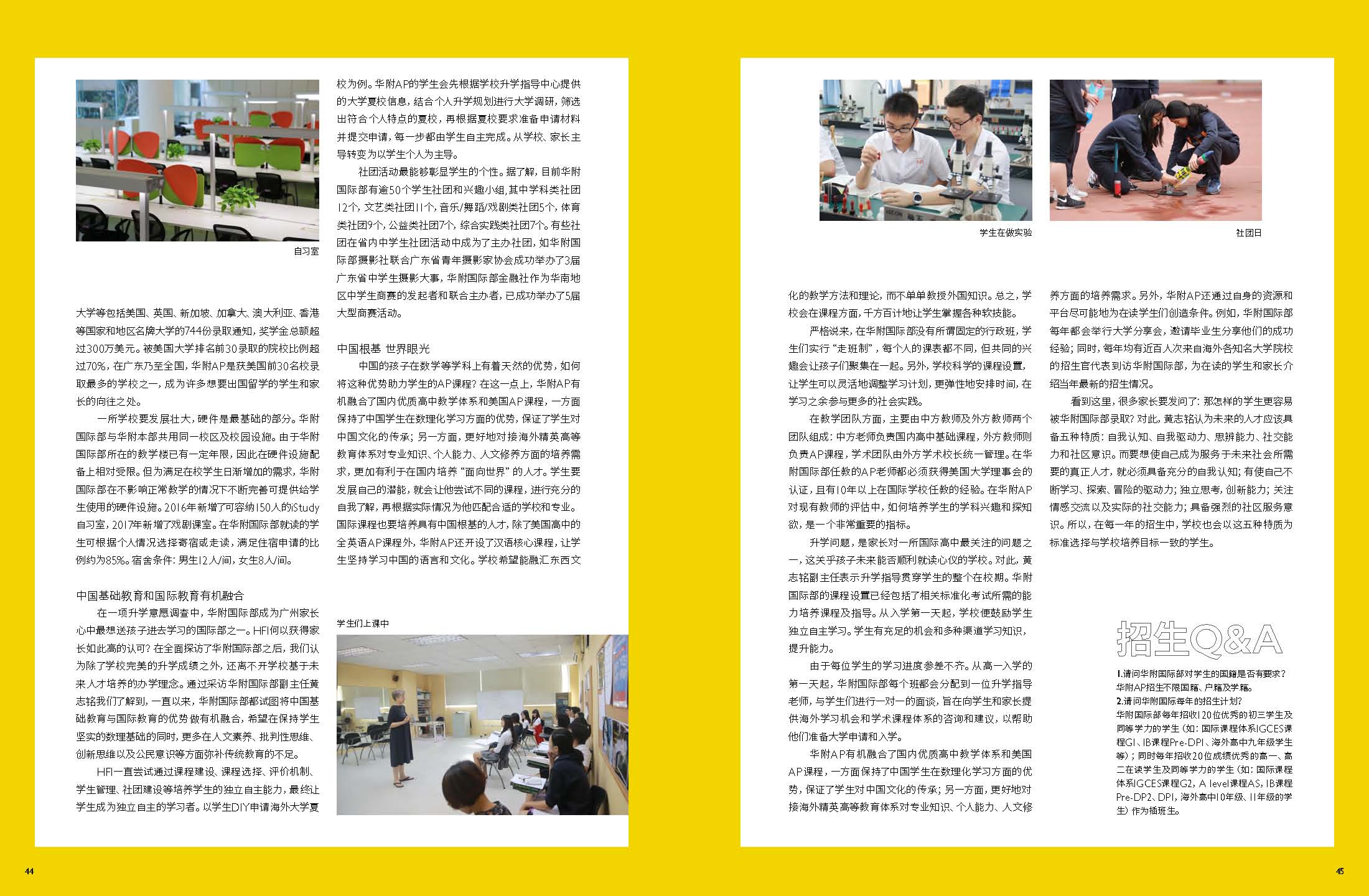 华附AP有机融合了国内优质高中教学体系和美国AP课程,一方面保持了中国学生在数理化学习方面的优势,保证了学生对中国文化的传承;另一方面,更好地对接海外精英高等教育体系对专业知识、个人能力、人文修养方面的培养需求。另外,华附AP还通过自身的资源和平台尽可能地为在读学生们创造条件。例如,华附国际部每年都会举行大学分享会,邀请毕业生分享他们的成功经验;同时,每年均有近百人次来自海外各知名大学院校的招生官代表到访华附国际部,为在读的学生和家长介绍当年最新的招生情况。
