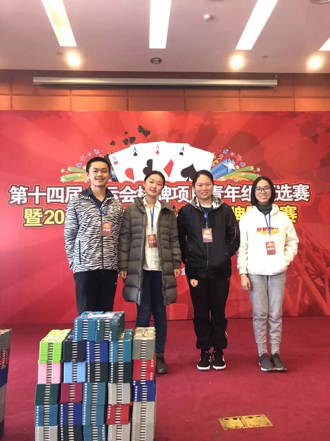 2018年12月30日,HFI桥牌社社员陈赟、招怡、罗含一、方力驰四位同学参加了第十四届全国运动会桥牌项目预选赛暨2018年广东青少年桥牌锦标赛。本次比赛在广州市金城宾馆举行,聚集了众多来自广州、深圳、珠海、海南等地区各大高校的青年桥牌爱好者。