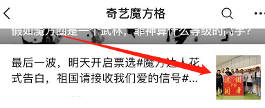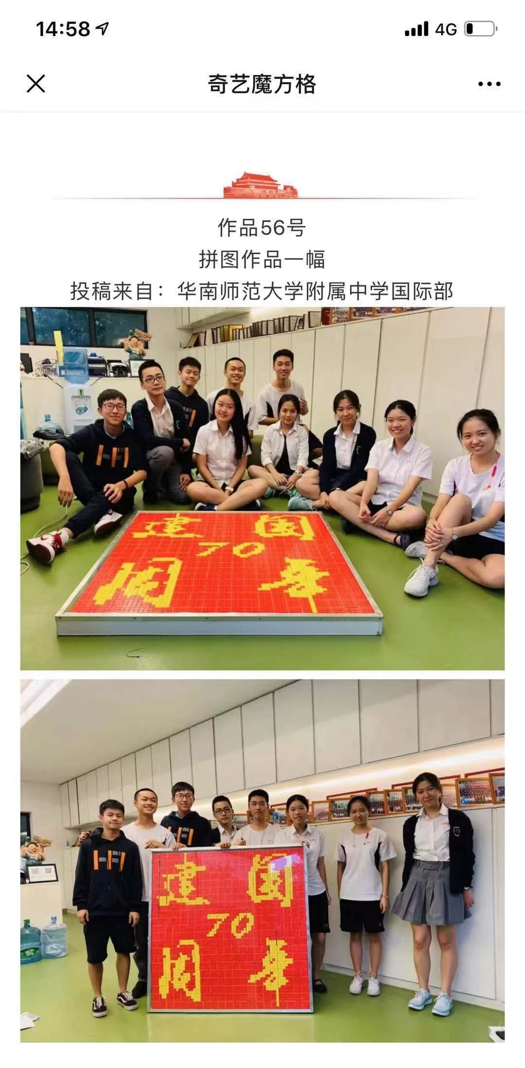 魔方社这幅“爱的作品”同时参加了世界龙头魔方品牌——奇艺魔方格的“庆祝新中国成立70周年”作品活动,同时被奇艺魔方格官方微信公众号选为封面图片。