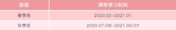 注:春季班(2020.02-2021.01)将于春节假期后一周开课,从2月3号至2月8号需连续集中上课 6 天,请家长合理安排春节假期。