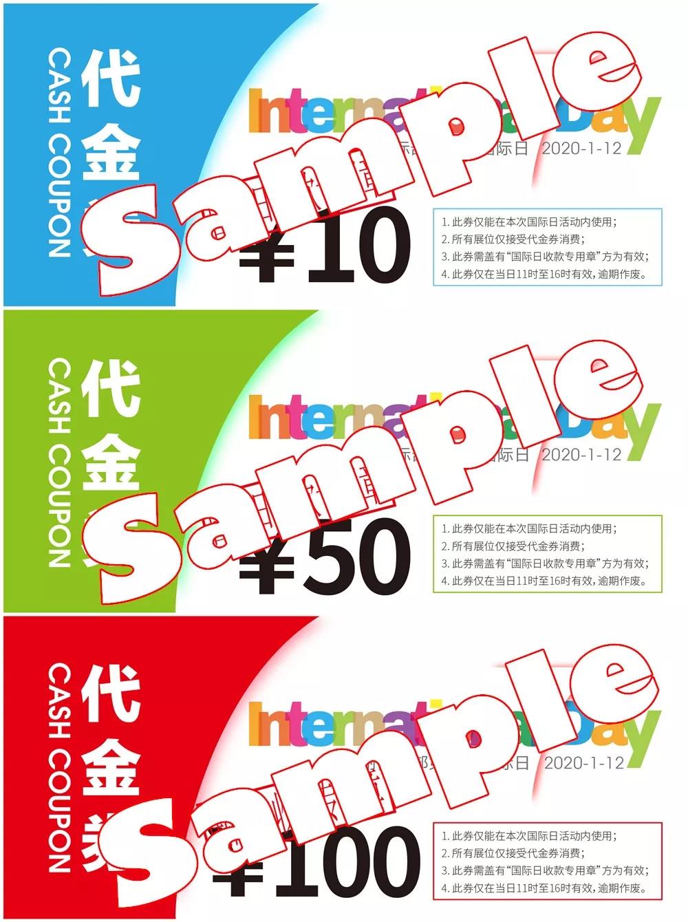 代金券的面值分为¥10,¥50,¥100三种,具体样式如下:
