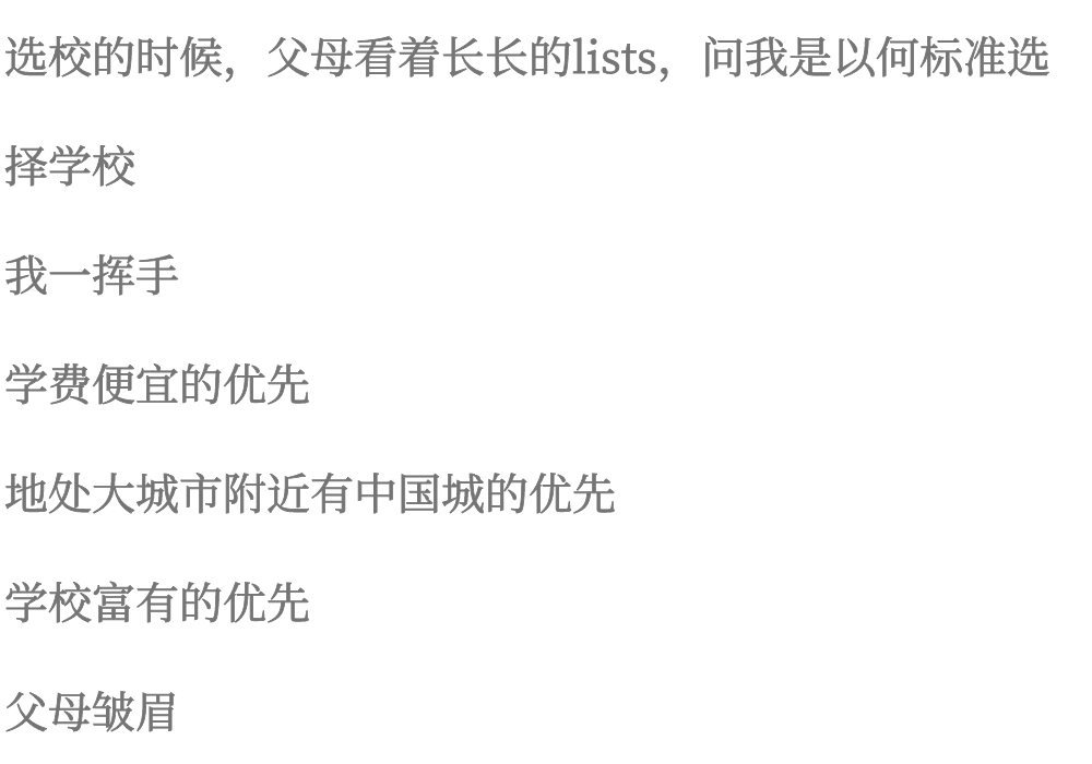 我巴望着我能觅到一个和我风格相衬的学校,早早结了事儿,回家睡觉。然而事实证明,没有任何一个学校以肤浅为其立校之本,一个个火眼金睛的招生官总是踹得毫不留情。