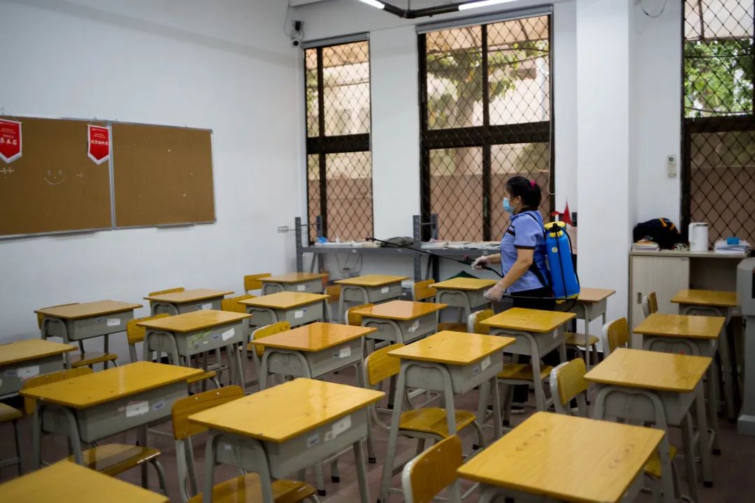 校工师傅清洗空调滤网,网管老师确保教室设备都能正常运行,清洁阿姨也是不停地打扫-清洁-深度消毒-打扫-清洁-深度消毒,家长为学校防疫捐赠的测温仪……