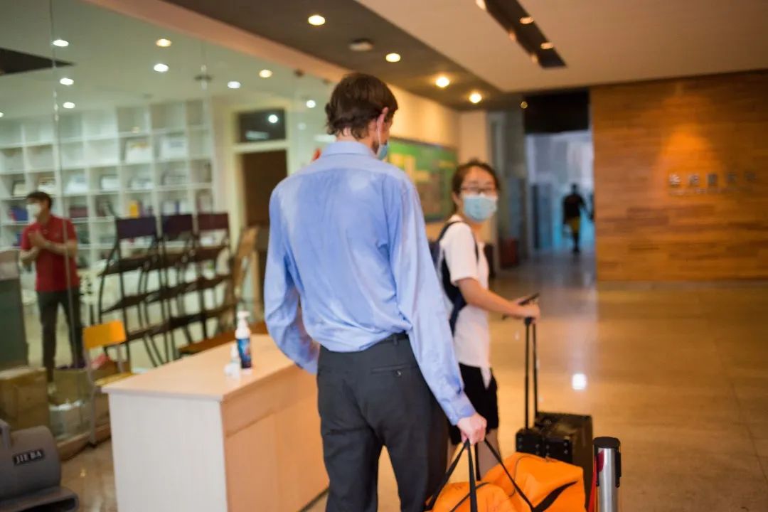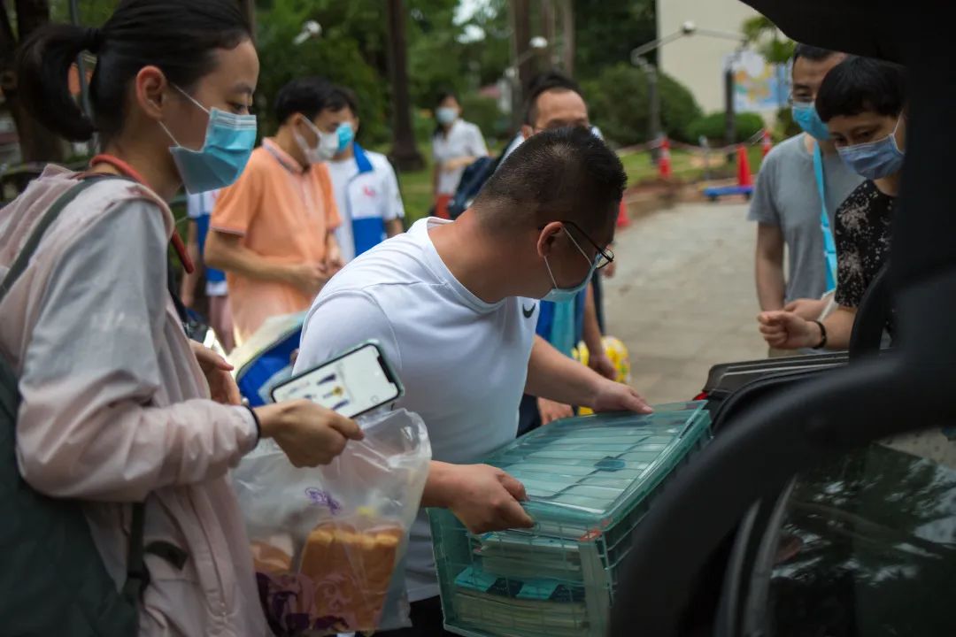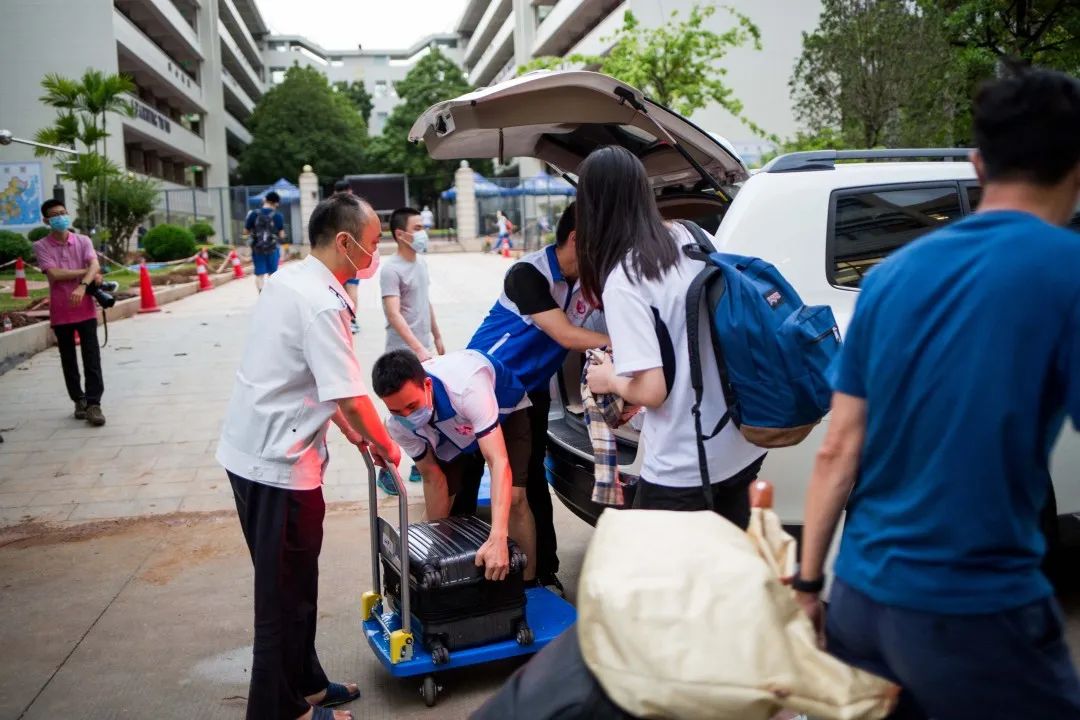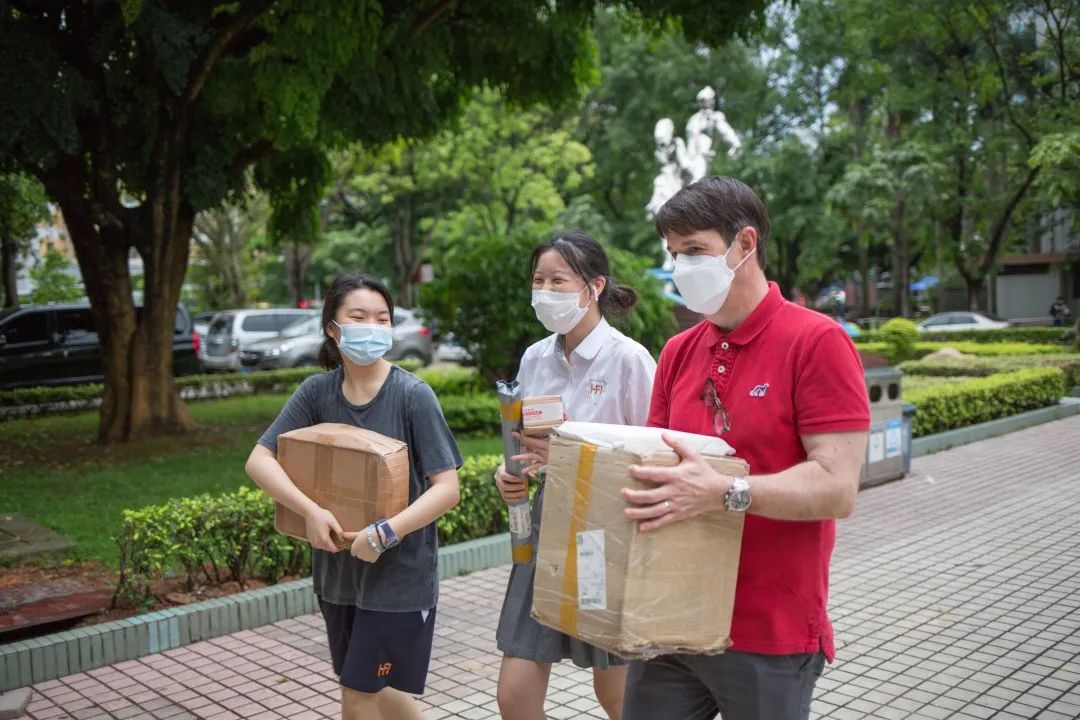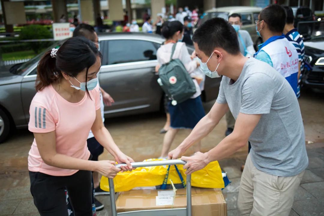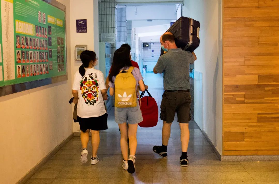 华附国际部的教职工志愿者一早便回到学校为当天下午提前到来的高一住宿生返校高峰随时候命。