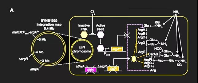 我们的设计就是——通过转基因、突变基因、组装基因、敲基因,让大肠杆菌拥有以下的基因通路的基础部分: