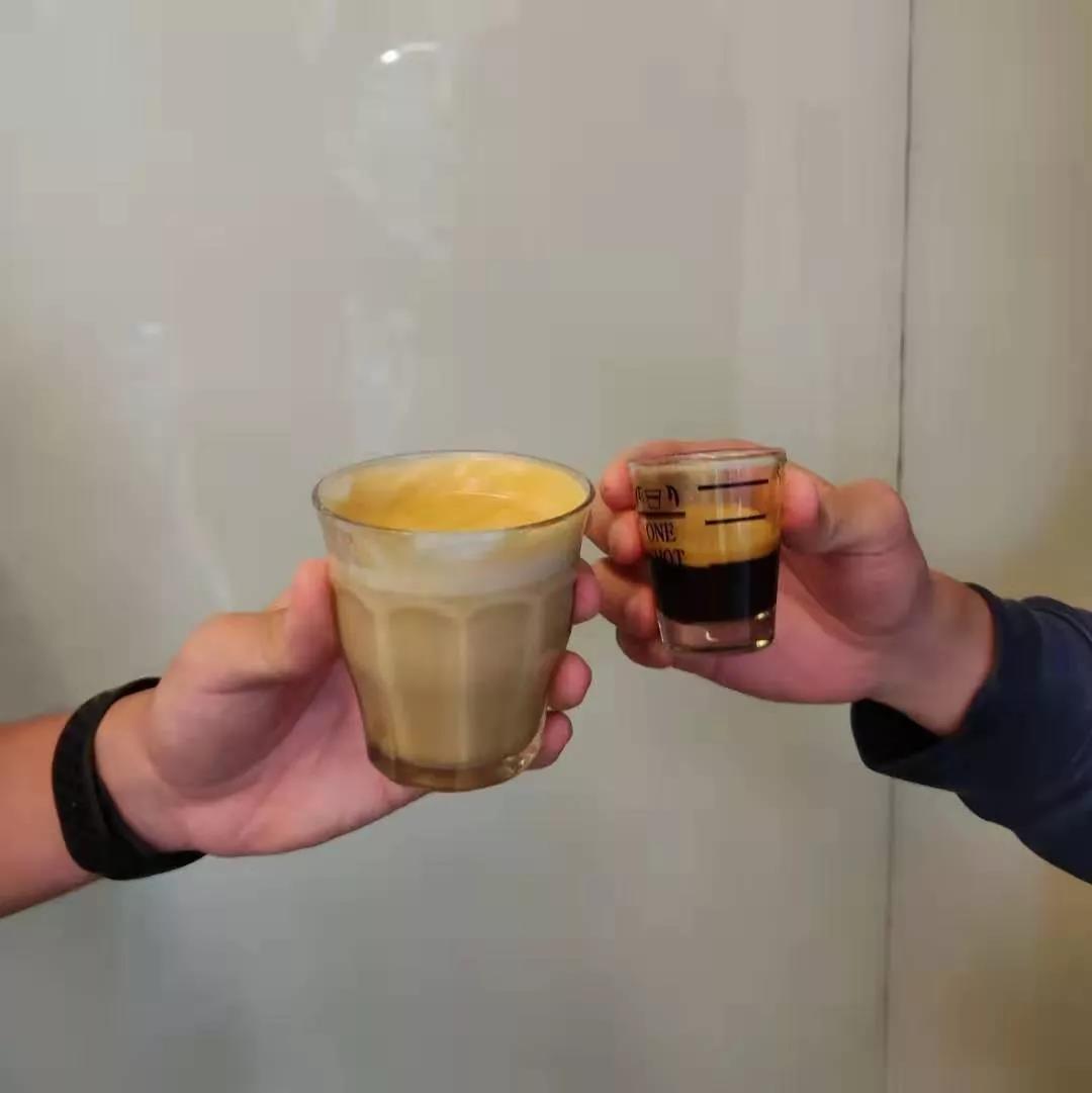 社员在体验自己做的意式咖啡后激情碰杯