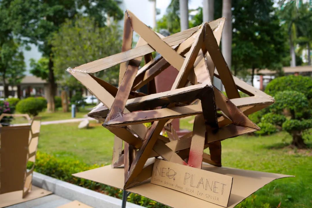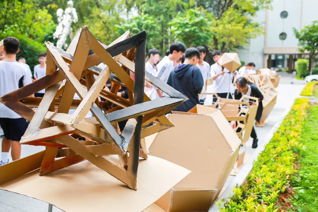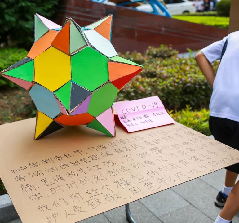 今年的主题是几何体在空间中的自由搭配和呈现,目的是让学生走出课堂,了解空间几何体的结构,培养学生的创新思维、创造力、想象力、组织策划和团队合作精神。数学来源于生活,也应该应用于生活!
