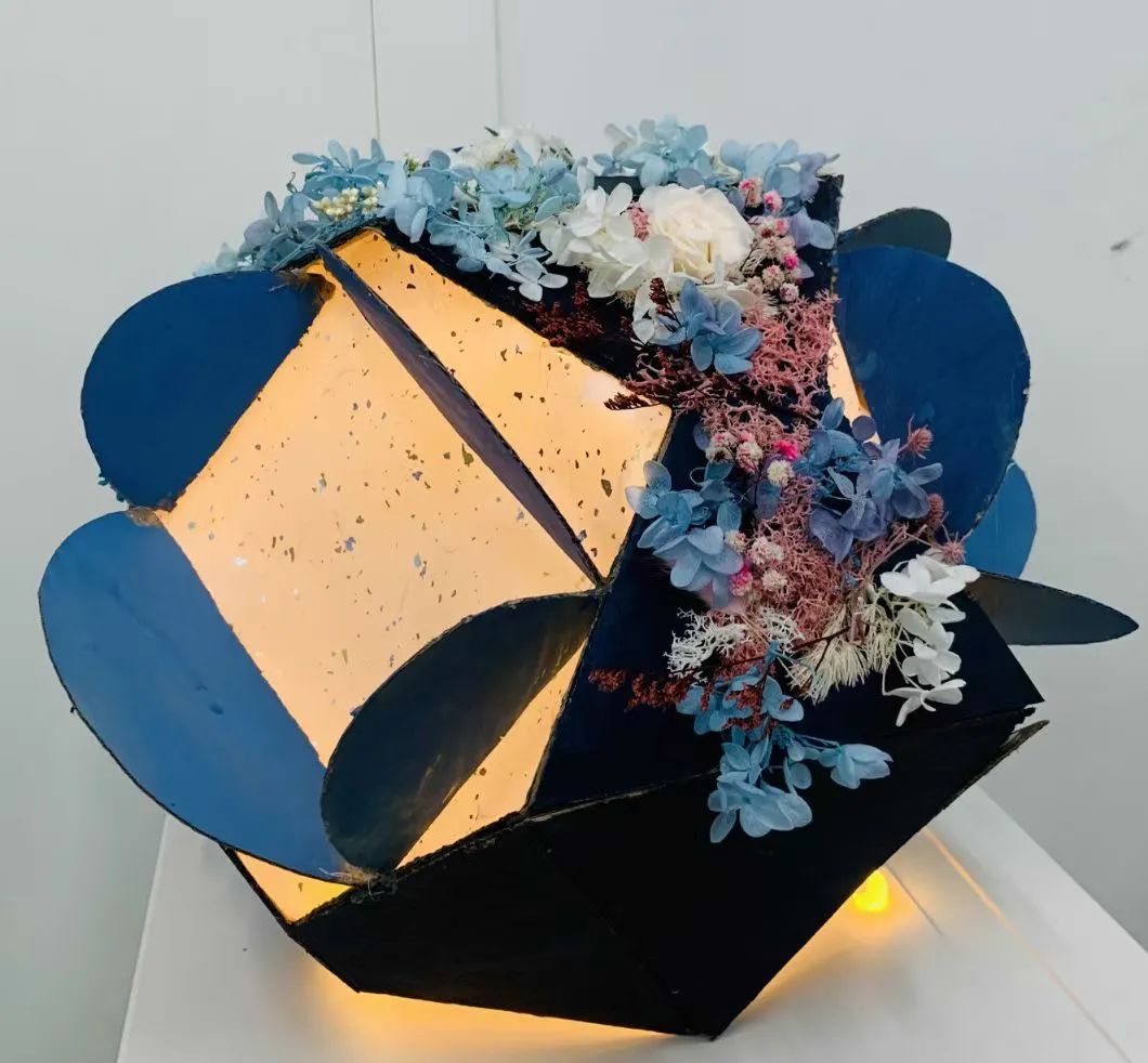 所以我们可以看到学生展示的作品和想法都十分的天马行空:有用几何图形搭配干花制作的花灯(《Blooming Light》),结合人体美学搭建的沙发(《空心沙发》、《不要动我的沙发》),糅合几何和历史建筑搭建出来的模型(《阿基里德螺旋》),呈现哲学和宇宙观的原子能量(《众志成城》),还有与2020话题息息相关的病毒与奋斗(《Covid-19》),甚至还有暖人心窝的小故事(《钓》)等等。这些作品都体现了STEAM。