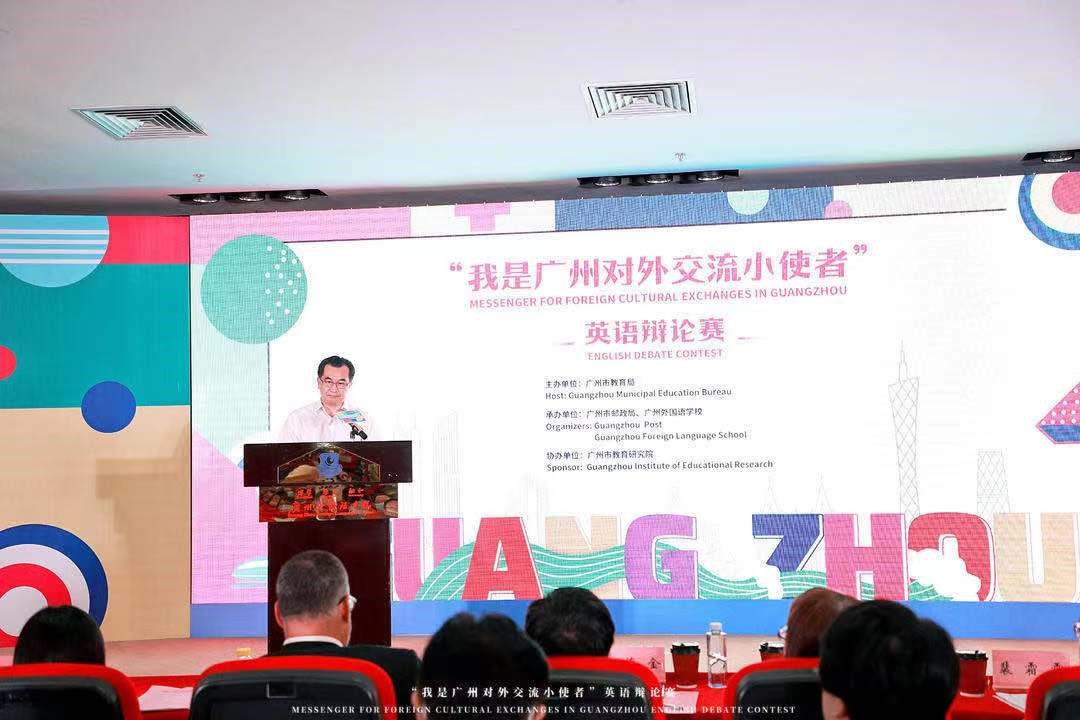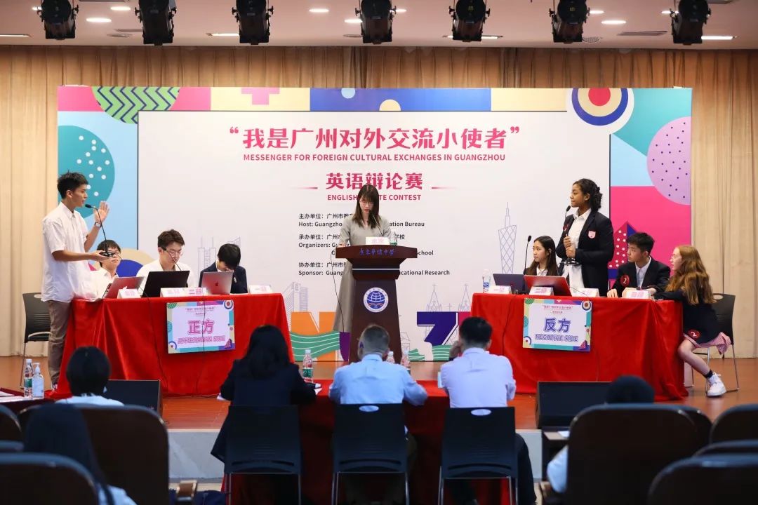 “我是广州对外交流小使者”英文辩论赛由广州市教育局主办,广州市邮政局、广州市教育研究院协办,广州外国语学校承办,全市共有14支队伍参赛,来自我市开办普通高中国际课程实验班和港澳子弟班的普通高中,以及在穗外籍人员子女学校。