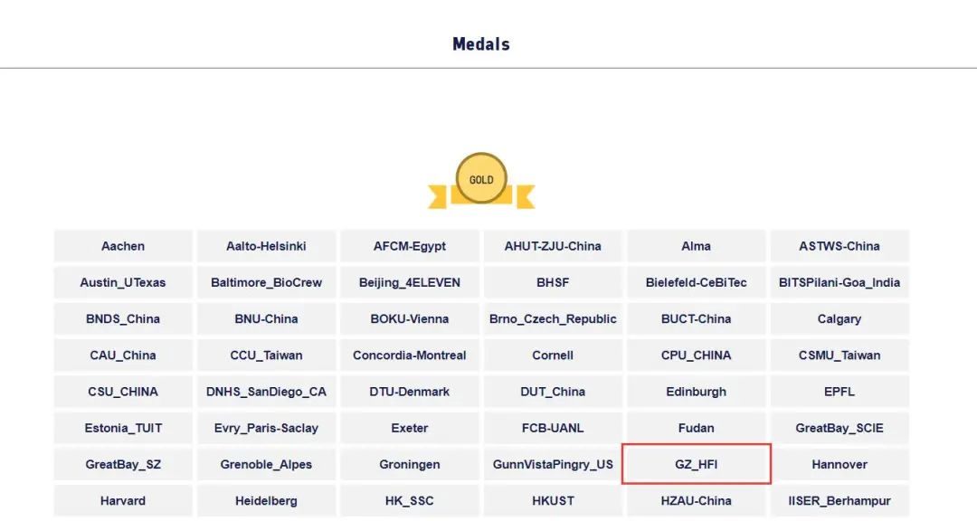 截图来自2020 iGem官网 https://2020.igem.org/Competition/Results#Gold