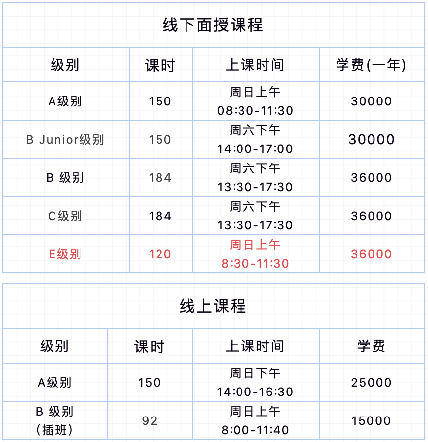 今年秋季,除开设现有的A/B Junior/B/C级别以外,EAP学术英语系列重磅推出E班!作为EAP的最高级别,E班趋向于母语学习者的学习方式,不仅涵盖社科、科学等学术论文,还有大量经典文学著作及历史文章精读分析,培养学生对语言研究的兴趣,引导学生自主学习。想要追求自身兴趣、多元化英语学习,实现英语自由的同学,不容错过!