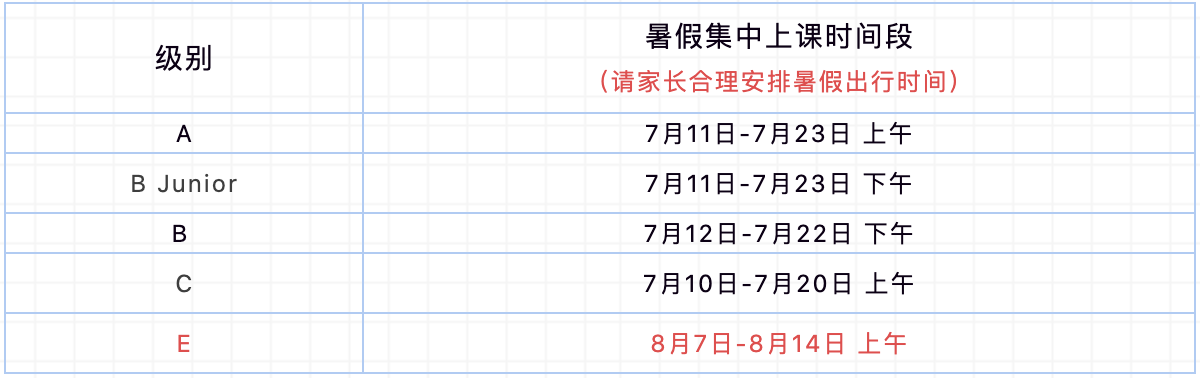 7. 开班上课,暑假集中授课时间安排如下: