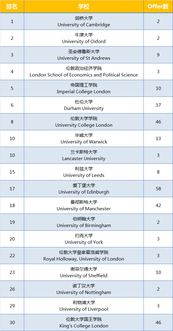 而英国方面,今年的高三毕业生共收获英国牛津&剑桥大学录取4份,英国G5大学录取63份,英国Top 30大学录取282份……