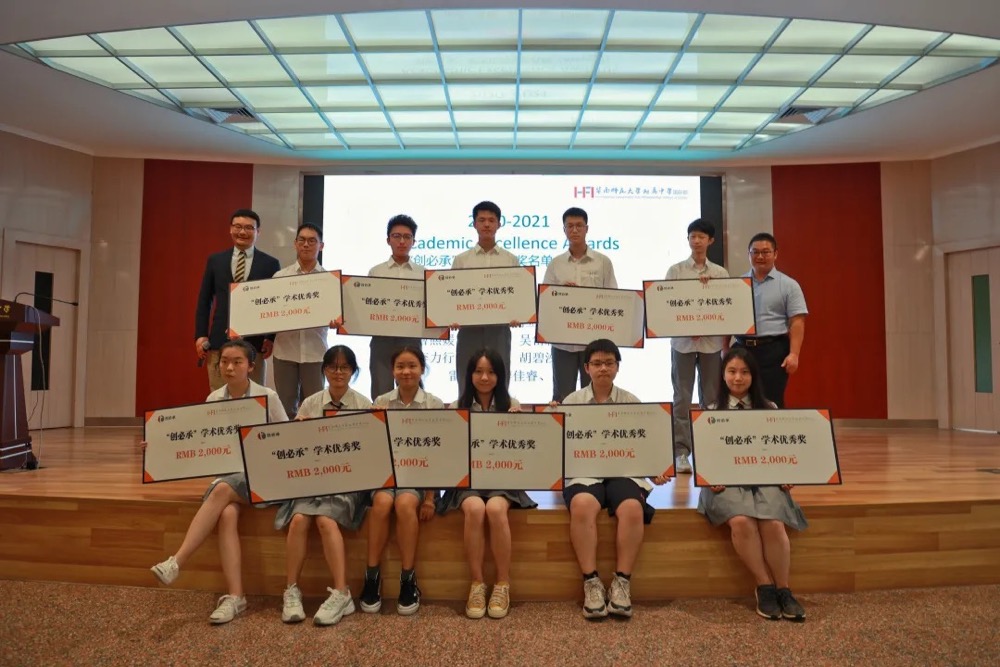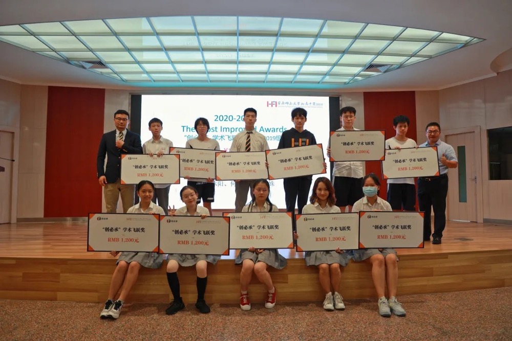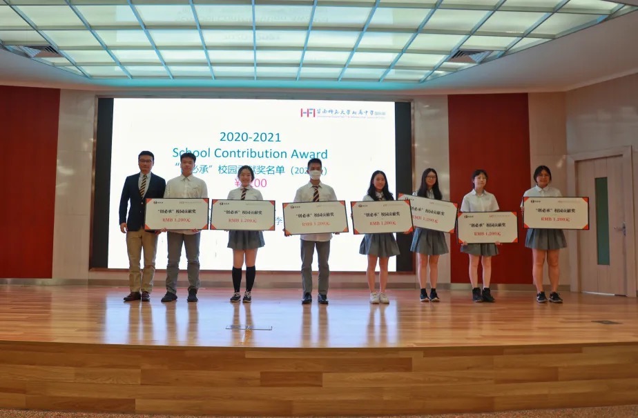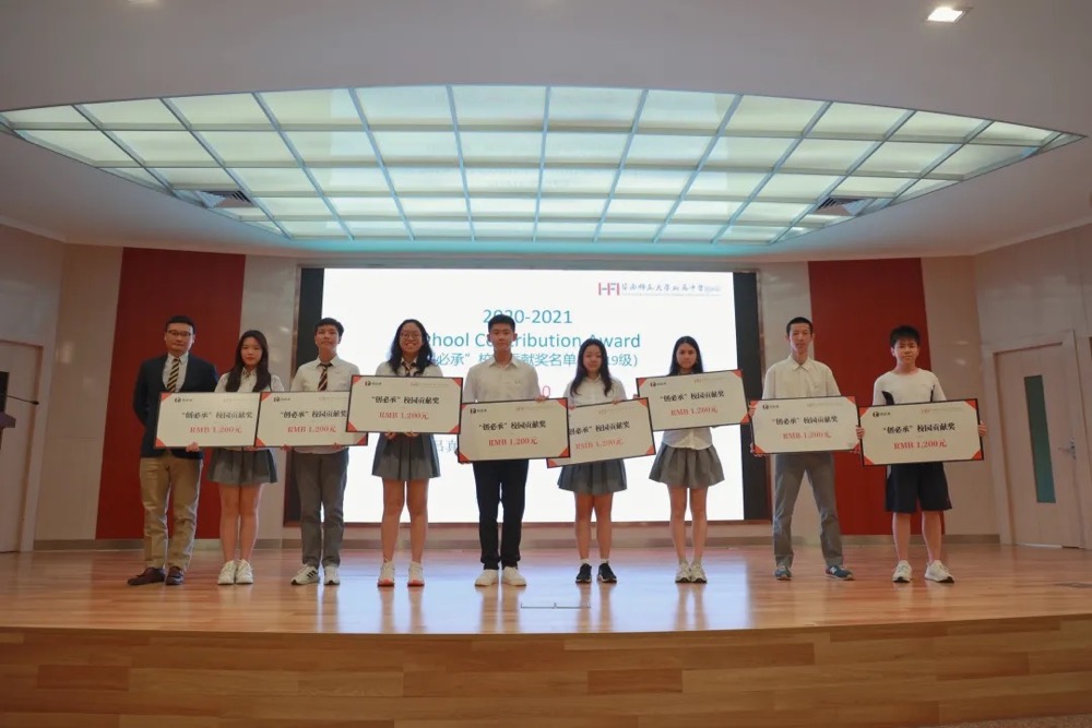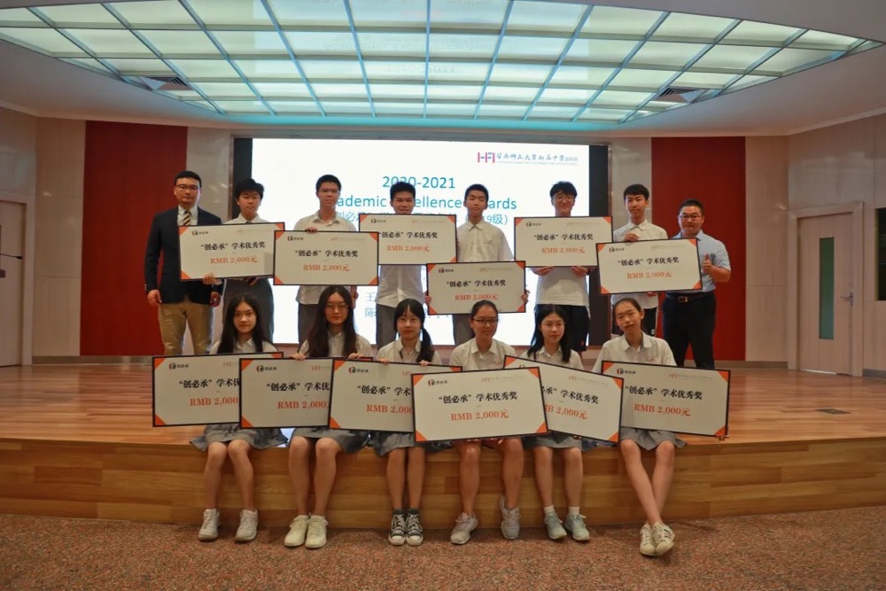 在学术校长对新学年学术要求和规则作了详尽说明后,最激动人心的当属颁奖环节。通过提名及各方评选,本次开学典礼颁发了2020-2021学年学术优秀、学业飞跃及校园贡献三个奖项,奖项由“创必承”创始人孙明展先生赞助。奖项的设立是为了鼓励一届又一届HFI学子奋发向上,不断挑战自我永攀高峰。