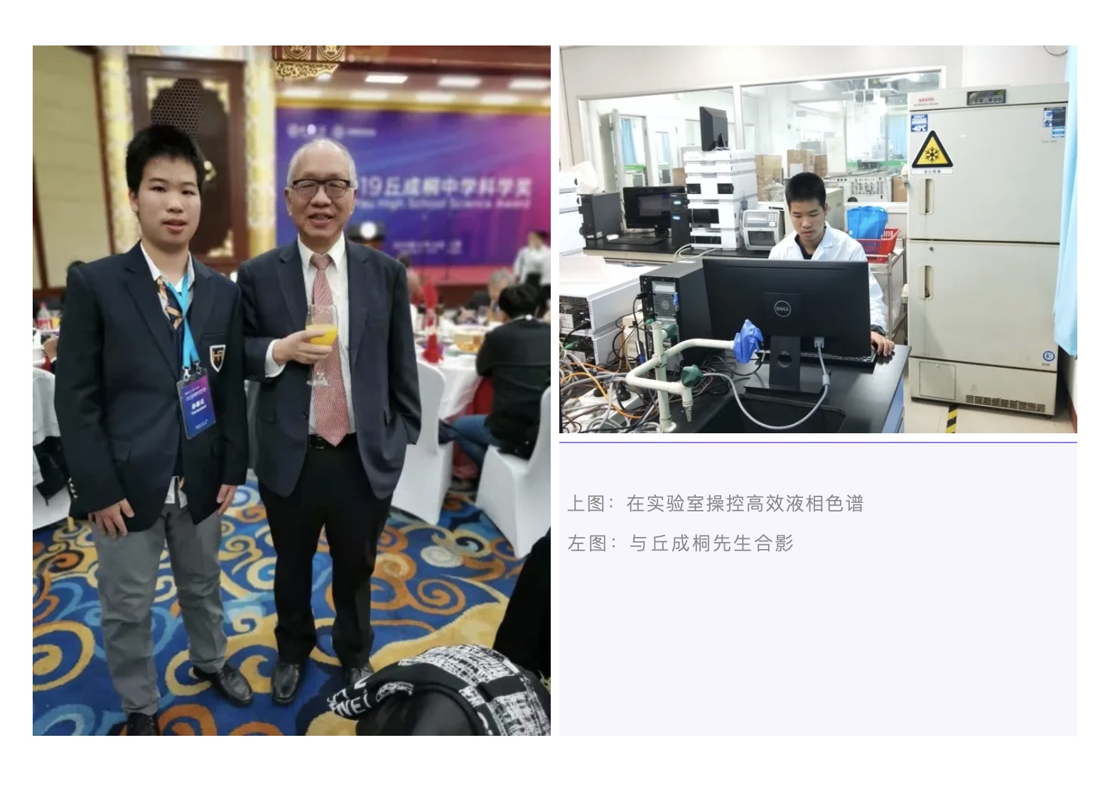 从小对于疾病的关注不仅激起了我对于社会问题的观察,同样也增加了我对于疾病机理和药物的研究。从2018年11月开始,我开始在中大进行抗高血压二肽的研究。虽然目前对于高血压的治疗药物不少,但是因为降压药的特殊性(就是需要终身服用),长期使用后的副作用令许多长期患者深受其害。我希望能通过自己的一些研究去寻找副作用更小的降压物质。在中大老师的指导下,从一开始的理论建模(用的是定量构效关系,希望能先筛选出比较良好的结构)到最后的动物实验,我用了一年多的时间,发现了可以用于降血压的二肽,也通过这个项目入围丘成桐化学奖的全球总决赛。可以说,这个项目对化学、生物等知识的积累和运用,让我第一次感受了学习的真正意义所在。这是我第一次真正用自己的知识去对抗疾病、帮助社会,令我十分欢欣鼓舞。