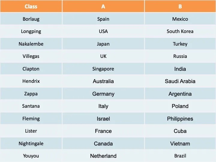 第9届国际日的国家分组与第8届线上国际日分组一致。由于线上国际日的视频展示部分给予了同学们极大的创意空间,因此,第9届国际日也将会保留代表国家的视频展示部分。