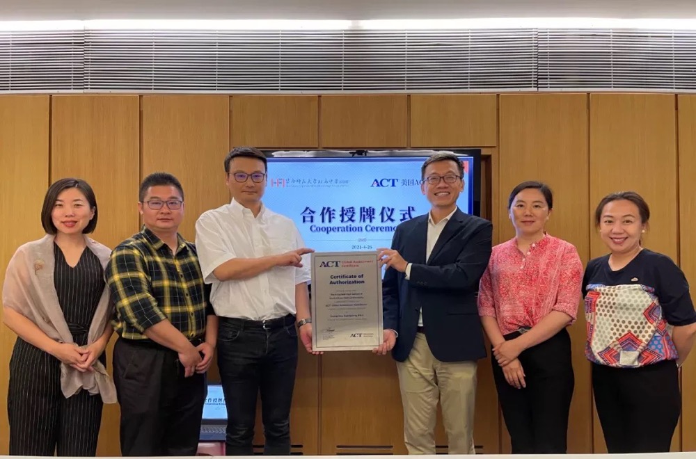 ACT亚太区总监陈永汉先生、青岛ACT-GAC中心宋文蓓女士及赵越玲女士,华附国际部校长朱志东、副校长黄志铭、掼蛋网页游戏大厅中心主任金婧等领导嘉宾共同出席仪式。授牌仪式过程中,双方就今年的海外升学及国际教育的情况进行了交流,并对接了关于ACT教学和考试的准备工作。