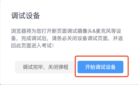 注意:一旦设备调试完成,除考生外其他无关人员不得出入考场。