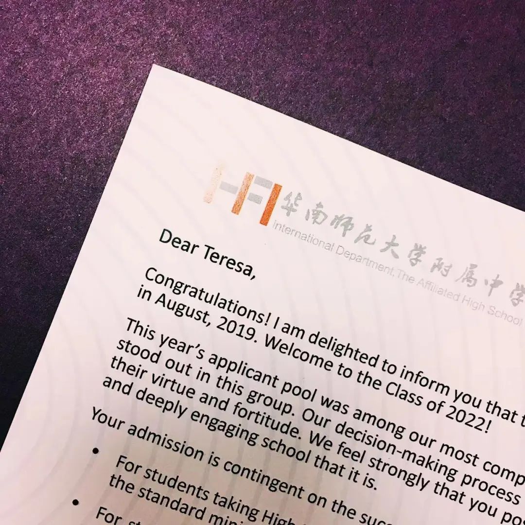 华附国际部2022届毕业生,初中毕业于执信中学,在21/22海外大学早申请中获美国弗吉尼亚大学(ED)录取。