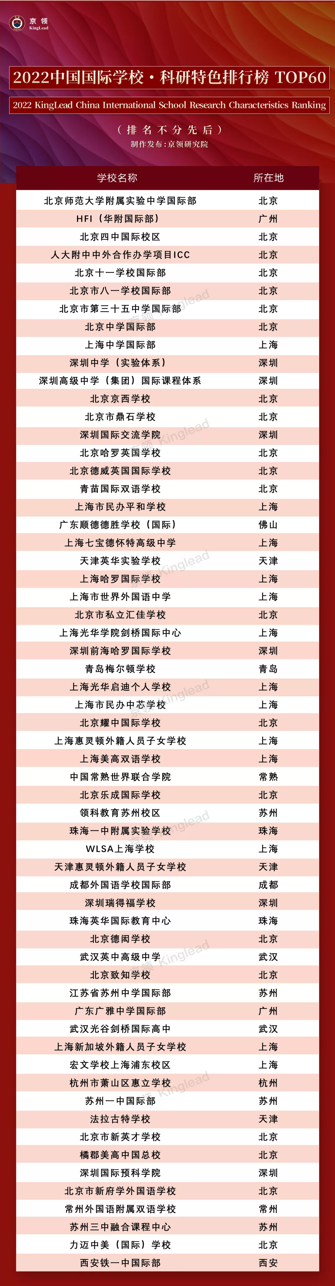 以下为本次登入京领科研特色榜的国际学校: